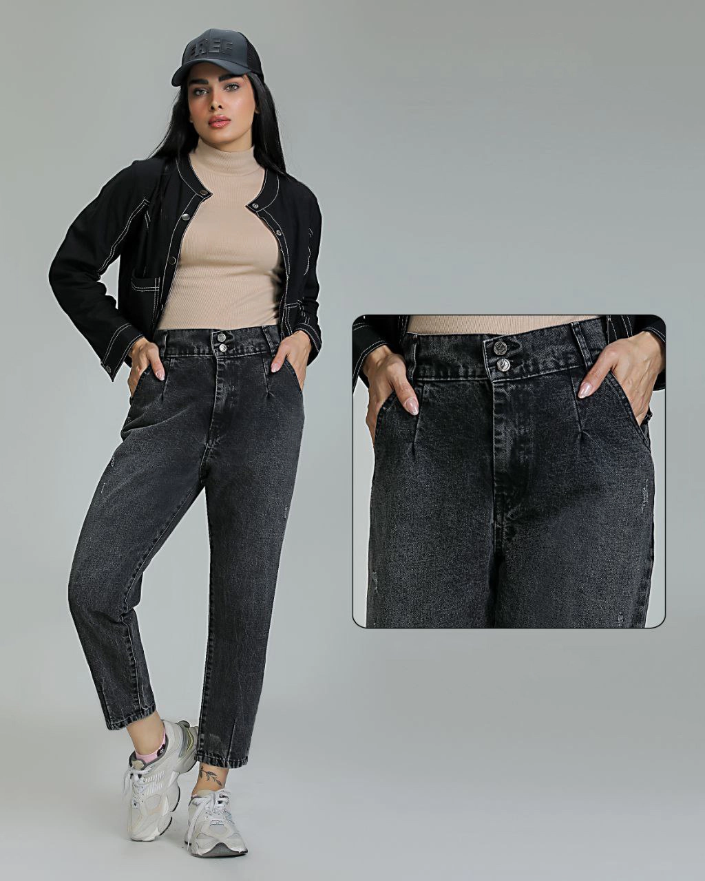 شلوار جین مام با فاق بلند و فرم آزاد در ناحیه ران، یکی از محبوبترین انتخابها برای استایلهای روزمره و نیمهاسپرت محسوب میشود. این مدل با الهام از استایل کلاسیک دهه ۹۰ طراحی شده و بهخوبی روی کمر مینشیند، در نتیجه علاوه بر راحتی، فرم بدن را متعادلتر نشان میدهد.