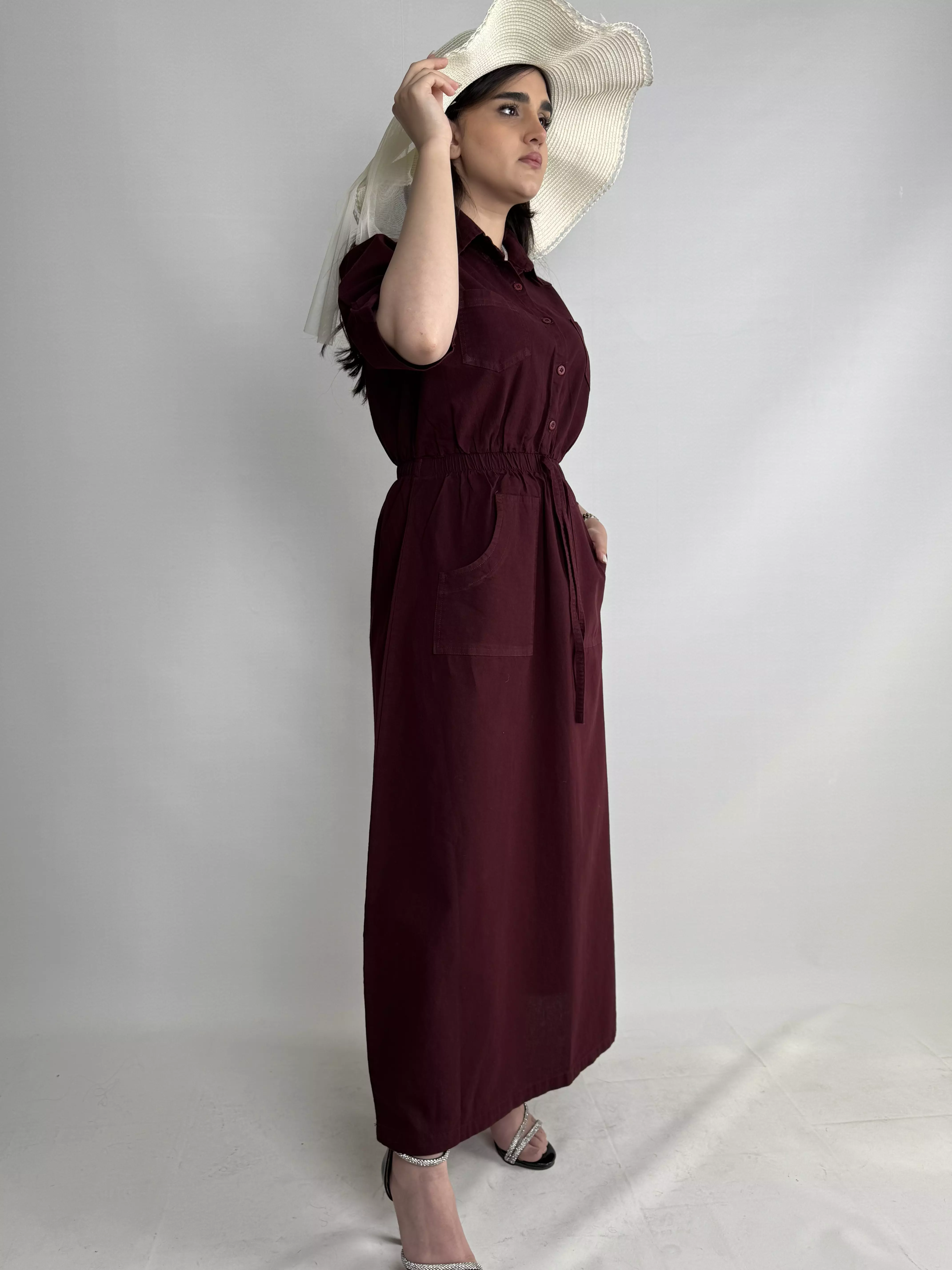 پیراهن ساحلی کتان زنانه زرشکی روشن